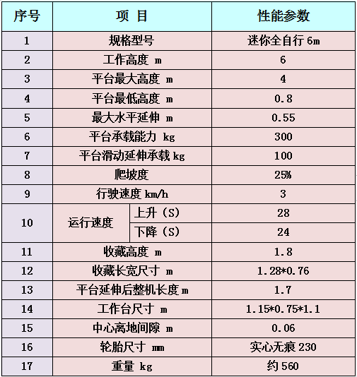 2、迷你全自行式升降平臺(tái)特點(diǎn)