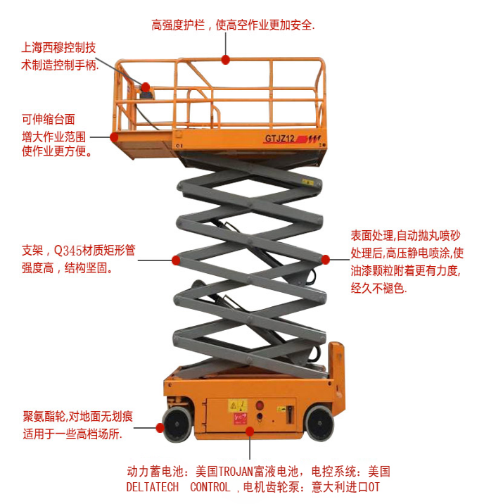 全自行升降平臺(tái)是靠電瓶動(dòng)力驅(qū)動(dòng)行走,可以在操作臺(tái)面進(jìn)行控制行走、轉(zhuǎn)向及升降的作業(yè)平臺(tái),是目前最市場(chǎng)上技術(shù)含量最高的高空作業(yè)設(shè)備。
