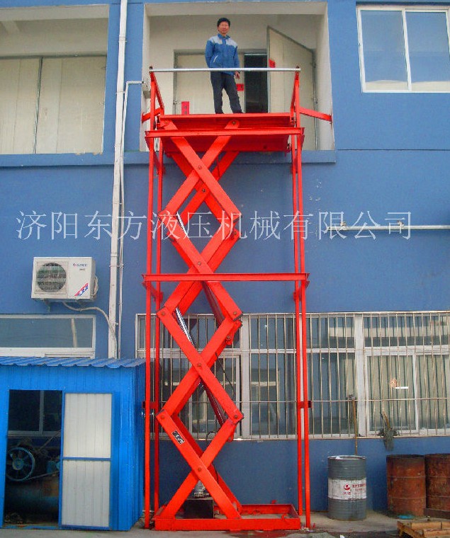 首先固定式升降機分為固定導軌式升降機、固定剪叉式升降機。